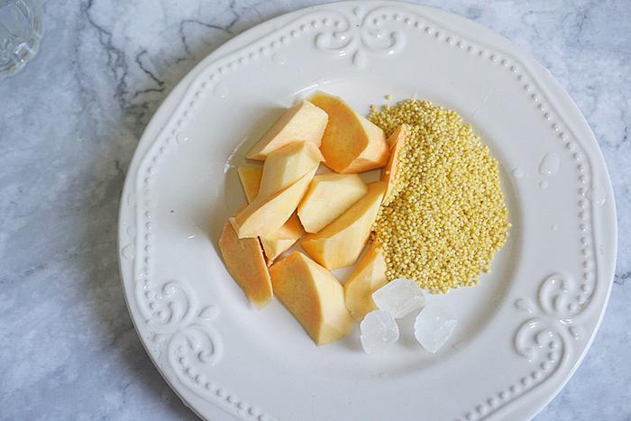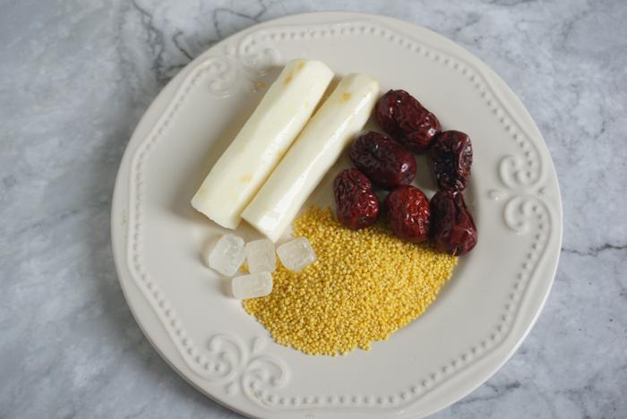 食材:铁棍山药,小米,红枣,冰糖,水。