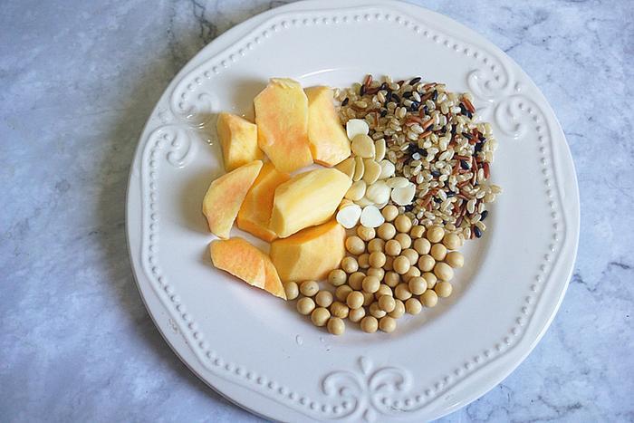 食材:红薯,三色糙米,黄豆,杏仁,水。