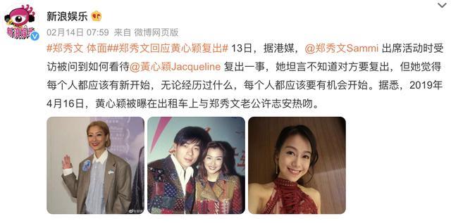 前段时间,黄心颖宣布复出,郑秀文给了最体面的回应:“无论经历过什么,每个人都应该要有机会开始。”