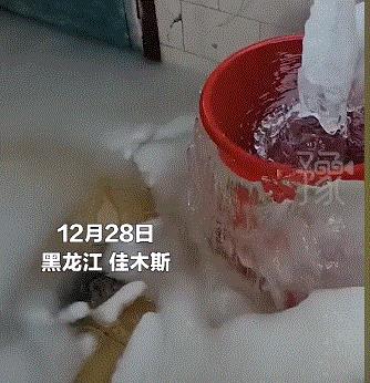 12月28日,在黑龙江佳木斯,有一户人家的水管爆裂。因为气温非常低,他家里漏水的地方全变成了几十厘米厚冰地砖。这家人打算明年再修。