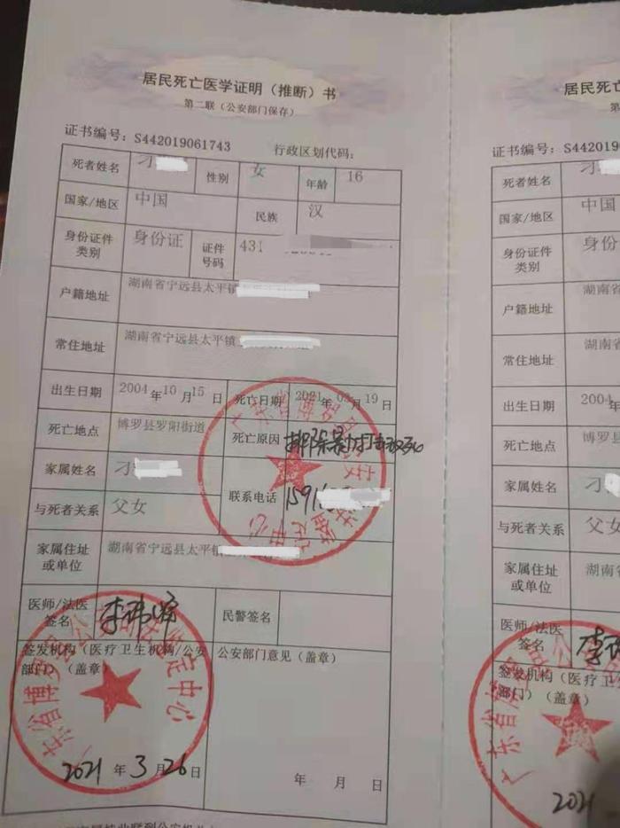 李惠群和丈夫刁艳平在惠州市博罗县罗阳镇经营理发店,并在博罗买了房子。李惠群告诉澎湃新闻,大女儿刁某出生于2004年10月,未满17周岁,有点叛逆。