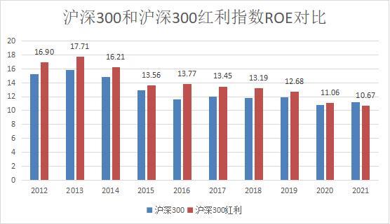 数据显示,过去10年,沪深300红利指数的ROE(净资产收益率)在大多数年份都比沪深300指数的数字高。