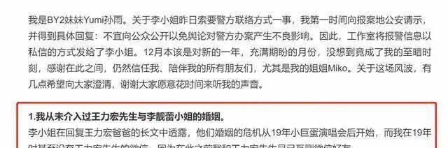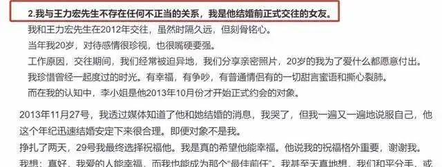 甚至还在文中提到了自己是王力宏结婚之前正式交往的女友,而自己也是在得知两人结婚的消息时才知道自己被分手了。即使文中并提到的事情都让人感觉这就是事情的真相,但是不久之后李靓蕾再次站出来打了她的脸,几句话就让她的几千字辩解成了“竹篮打水一场空”。
