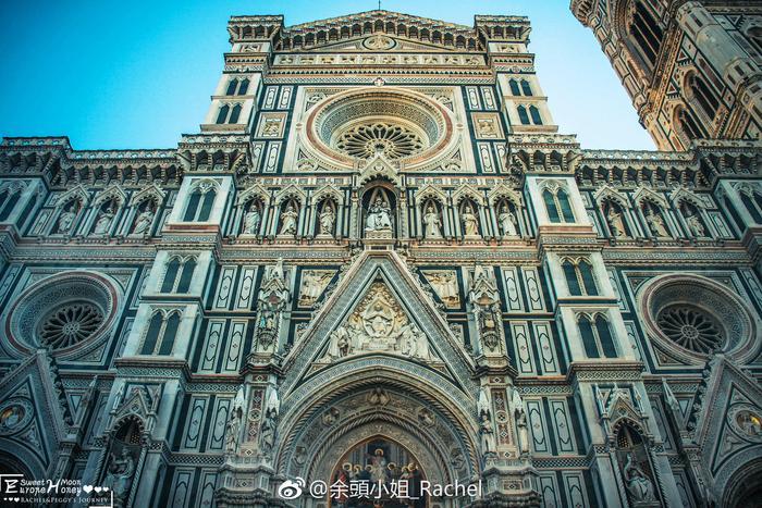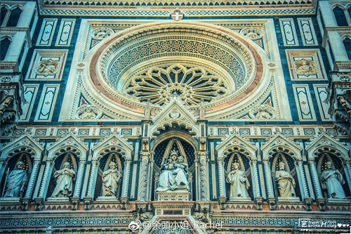 圣母百花大教堂是天主教佛罗伦萨总教区的主教堂,也是世界上第三大教堂。它是佛罗伦萨的标志,也是佛罗伦萨市内最高的建筑。圣母百花大教堂最诱人的就是它那红色的大圆顶,这一空中巨构没有借助于拱架,而是用了一种新颖的相连的鱼骨结构和以椽固瓦的方法从下往上逐次砌成。 @微博旅游 @新浪旅游