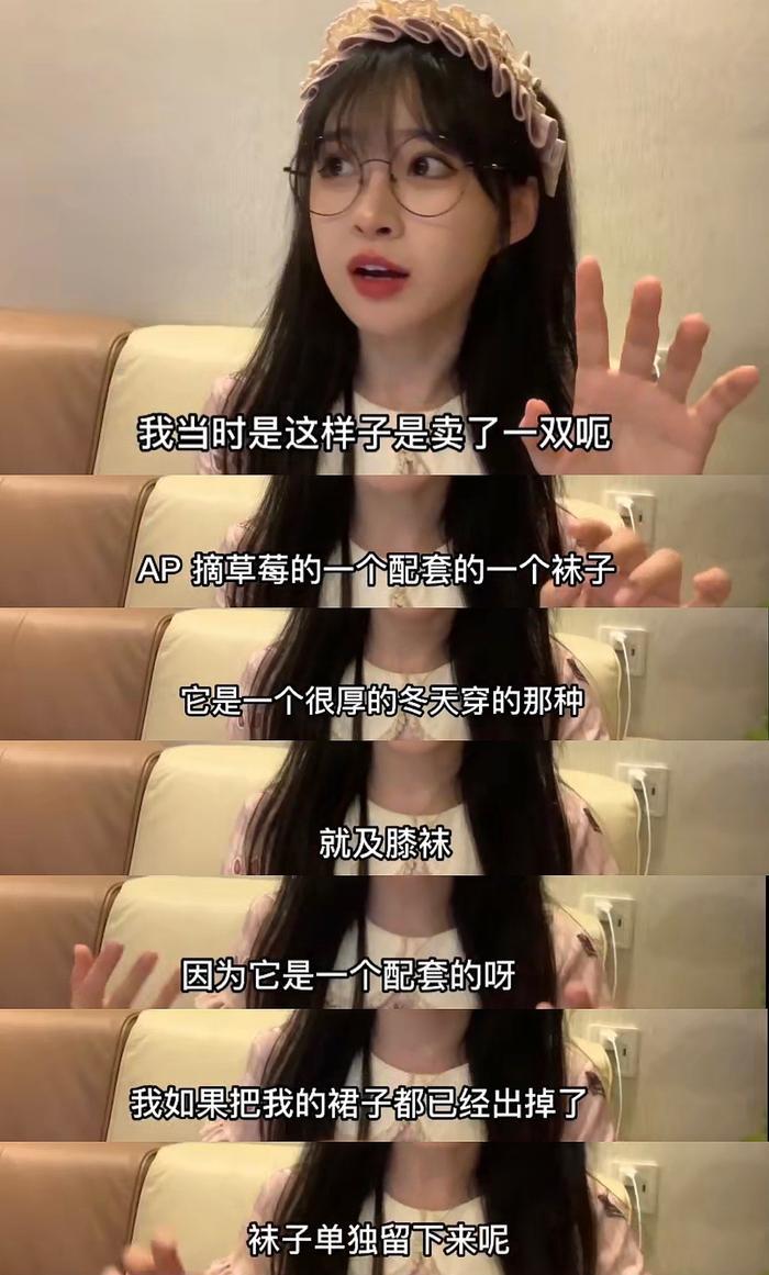 但是谩骂声再度响起,“二手原味”的话题再次被加热。这一次,夫人不吃鱼不再选择忍耐。7月16日的节目播出后,夫人不吃鱼在自己的社交平台,就“卖二手原味”等“黑料”,进行了再次澄清和道歉。她表示,所谓的“袜子不洗就卖”,是因为那双袜子仅仅试穿了几分钟,而且还是一双秋冬穿的厚袜子。而且之所以出售,是因为这双袜子作为一套名叫“AP摘草莓”的洛丽塔套装中的配套袜,在已经出掉了裙子的前提下,她也没理由把袜子单独留下来。
