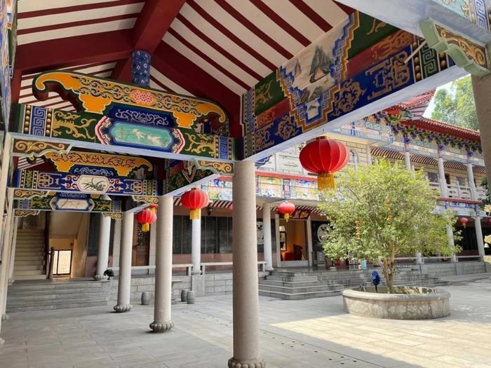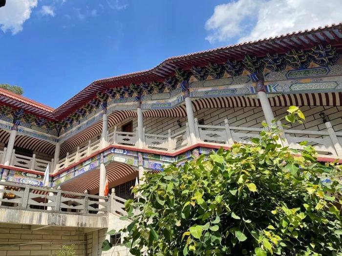 寺中建筑色彩明亮,雕梁画栋十分精致。