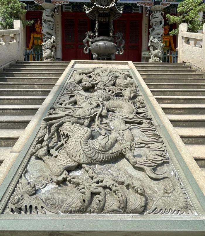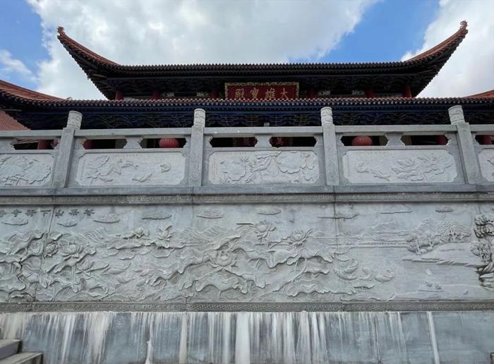 天王殿前的龙壁与龙柱,飞跃的斗拱檐角,石雕上的荷塘,每一处都精美而古朴、
