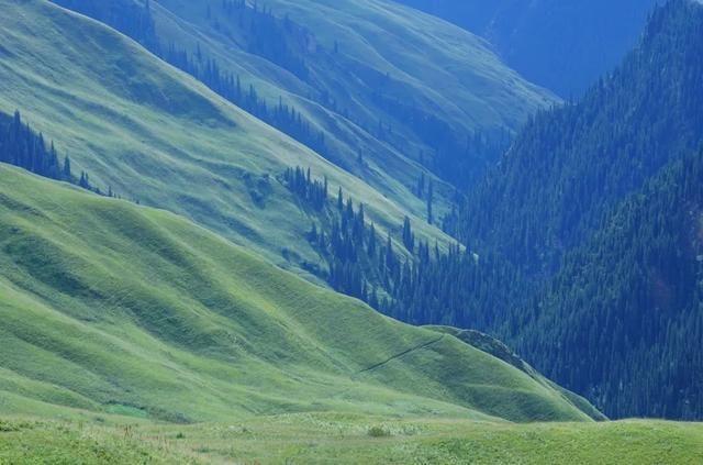 悦程出行觉得乌孙之美在于景观的丰富。这里的草原高低错落,遍布着成群的牛羊;雪岭云杉,挺拔密集;雪山,高大雄伟,即使在酷热的夏季也能感受到清凉;湖泊,湛蓝清澈,在阳光的照耀下,透着不同程度的蓝,天蓝、湖蓝、宝石蓝、孔雀蓝等等。