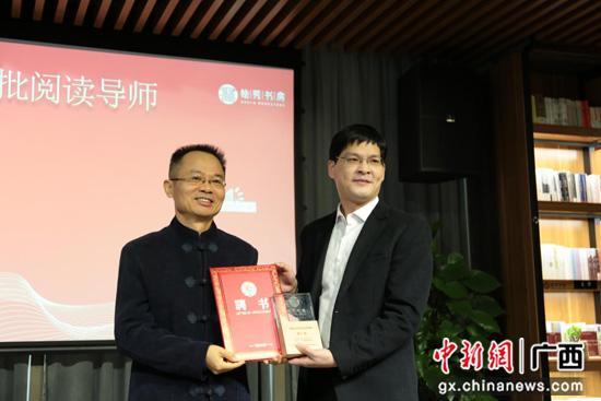广西师范大学出版社集团副总裁施东毅为独秀书房阅读导师颁发聘书。廖雨欣 摄