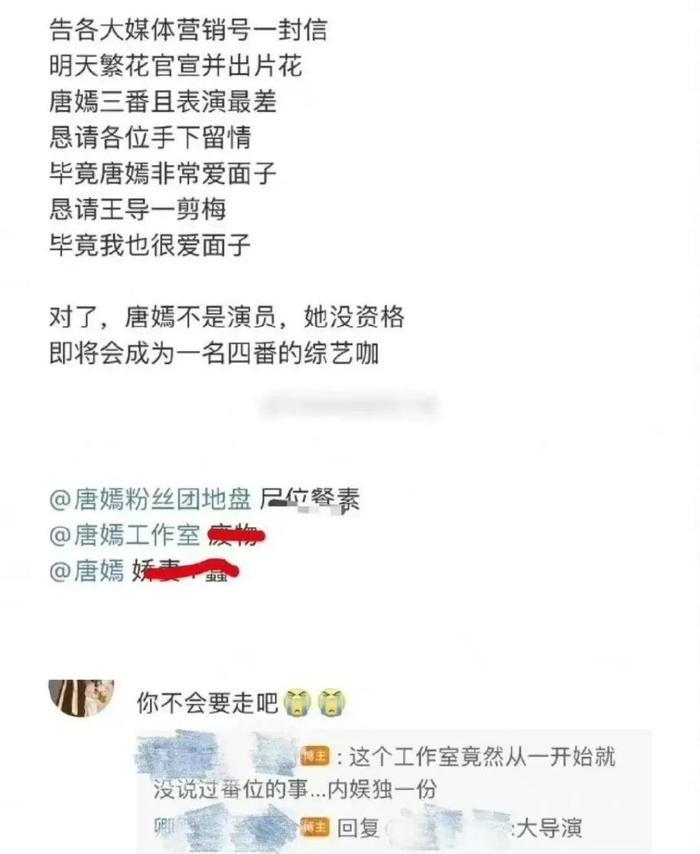 cp粉们大呼我嗑的cp成真了,可唯粉们就不乐意了。尤其是唐嫣生了小baby之后,粉丝们更是为了她的事业心力交瘁。她不进组拍戏,就到她和工作室的微博下面催她进组。她想陪着孩子成长,粉丝们就给她扣上娇妻文学。前些日子,《繁华》官宣,唐嫣是三番,粉丝们更是直接破大妨。