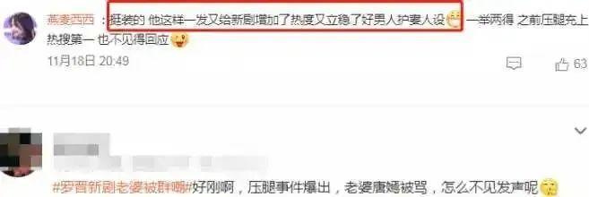 路人则觉得一切是为了炒作,不仅给新剧增加了热度,自己爱老婆的人设也能立的稳稳的。