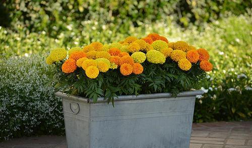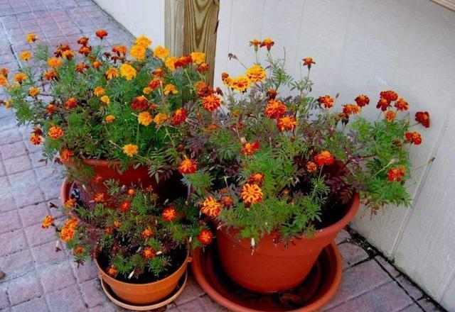 第五种:万寿菊万寿菊是菊科的一年生草本植物,一般是用种子种植,生长快,花期长,从春到秋都能开花,花量也很快,茎直立,多分枝,花色很丰富,以桔色为主,可以盆栽,可以地栽,因为其花量大,花期长,所以很多地区的公园里都会用它来装饰,有较好的观赏价值。