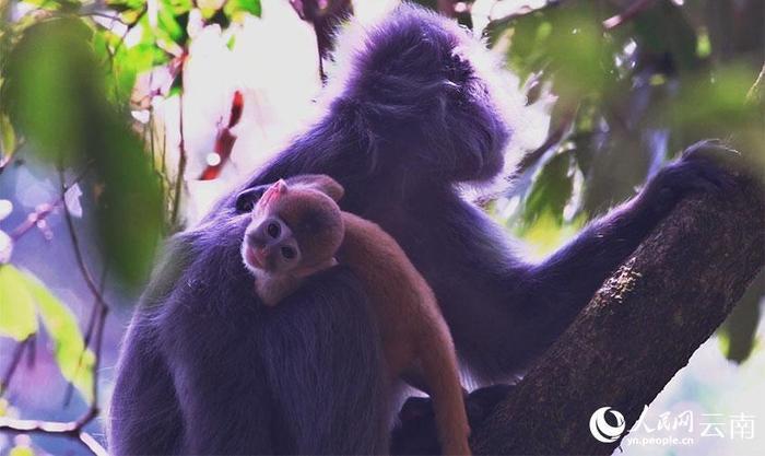 “这次在保护区拍到菲氏叶猴和幼崽同框画面,实属不易。我们的技术人员经过20多天的野外跟踪,才发现菲氏叶猴的行踪。特别欣慰的是,还在多个点位拍到了刚出生不久的幼崽。”龙陵小黑山省级自然保护区管护局工程师孙兴旭说。