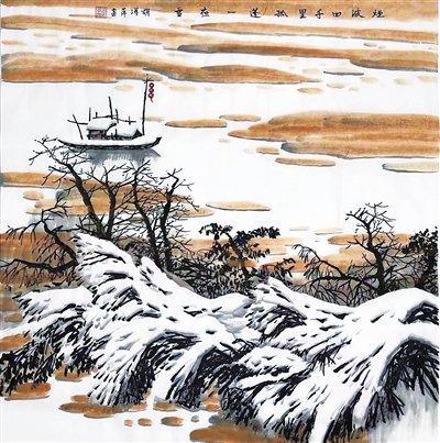 欣赏冰雪山水画,让我产生很直观的感觉还在于:它们都充满古典意蕴。看着,看着,我们似走进唐诗宋词的世界。一幅画就是一首诗,一首很古典的诗。我一边赏画,脑海里一边蹦出“千山鸟飞绝,万径人踪灭”“春雪满空来,触处似花开”“不知天上谁横笛,吹落琼花满世间”“夜深知雪重,时闻折竹声”……的诗句。“诗是无形画,画是有形诗”。作者是在借绘画的手法,通过独特的意象组合,构建富有审美情趣的艺术画面和唯美意境,为我们抒写出一首首古典意蕴浓厚的诗。很显然,这样的画,这样的诗,给人以美感,给人以艺术熏陶。