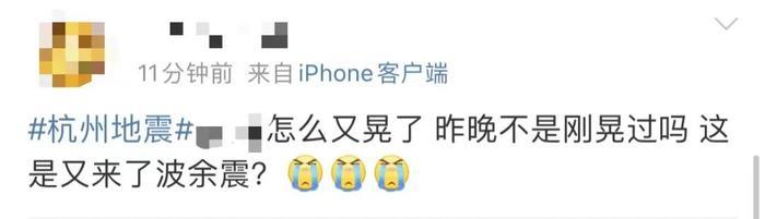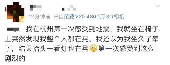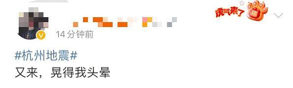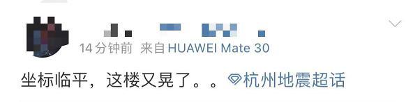 有杭州网友表示,“杭州又晃了!,难怪我又晕了一次”,特别是一位家住19楼的网友说,震感有点明显,“晃晕了”。