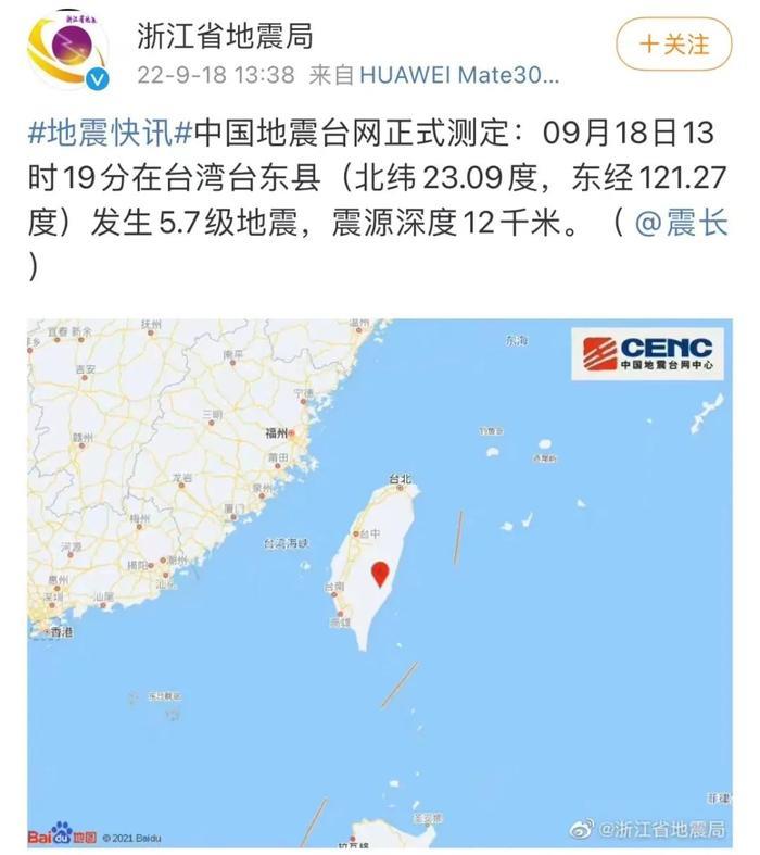 浙江省地震局官方微博也发布了消息——