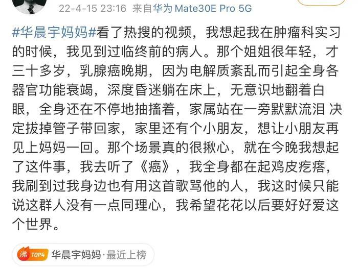 但对于华晨宇,一个至亲经受癌症折磨的人来说,癌症并不是“可爱”的。