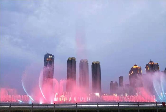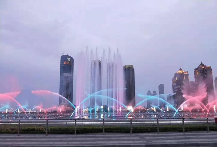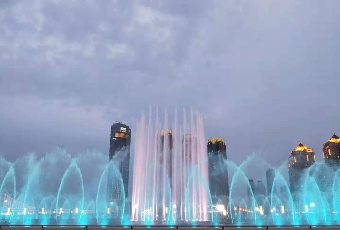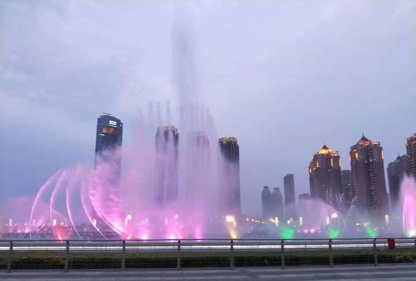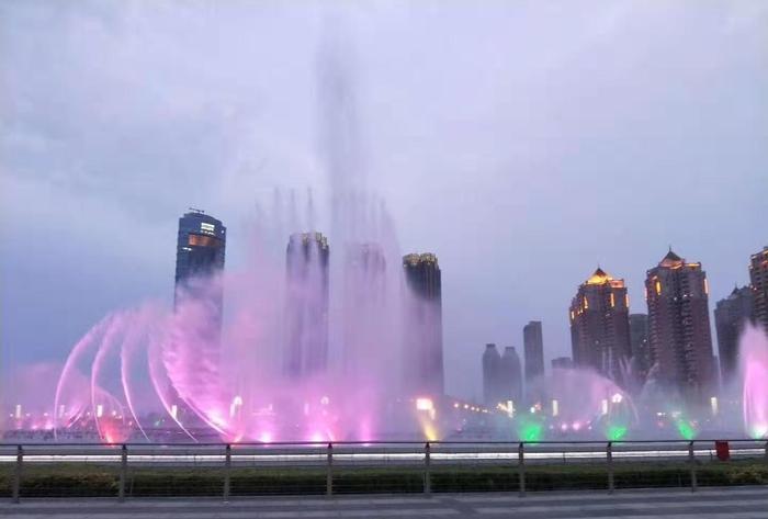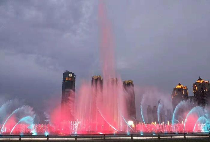 每晚19点30分至20点30分之间,星海广场音乐喷泉会不定期不间断的表演,吸引了大量大连市民和外地游客游玩观看。