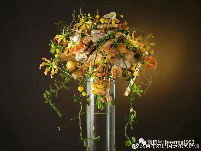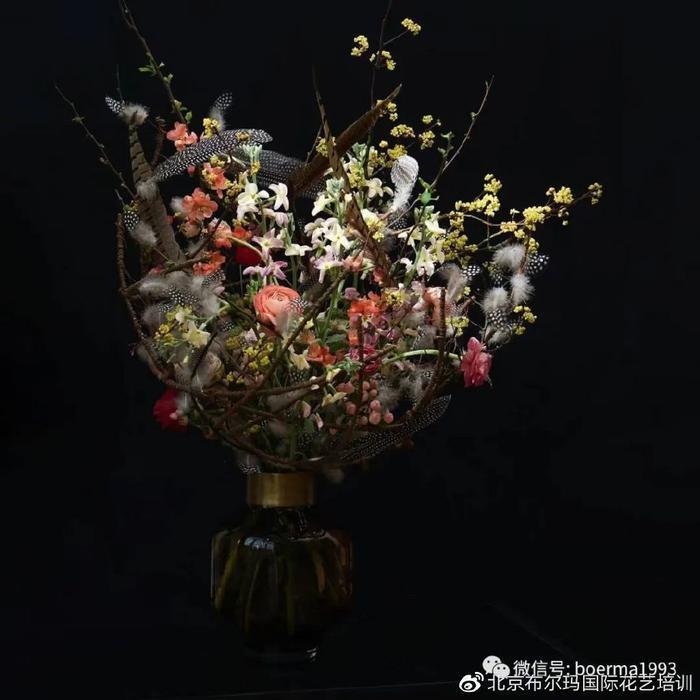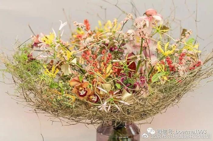 通常来讲花束是鲜花和叶材构成的,而现代架构花束可通过非植物材料的搭建为花束增添商业附加值。