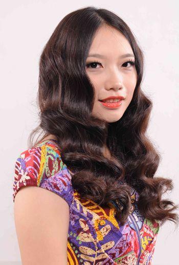 有着独特华丽复古感的一款水波纹长卷发发型,同样利用了两侧的蓬松卷发来达到修饰脸型的目的,优美而又规则的卷发线条非常适合沉稳大气的中年女性,自信而又不失性感。