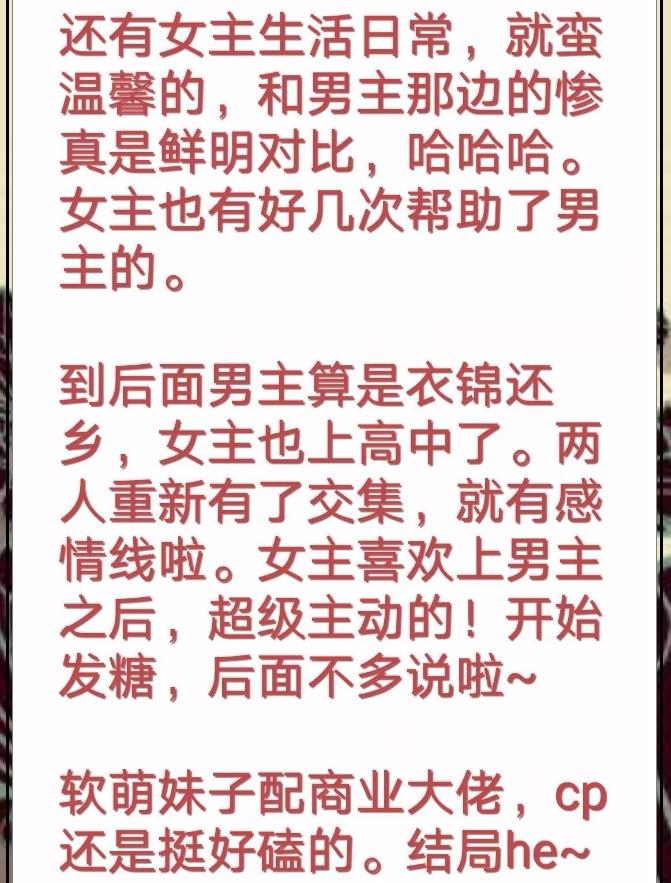 于是,一不小心成了大佬们的白月光,变成了大佬们的救赎。本文语言风格轻松,节奏明快,时不时能让人捧腹大笑,剧情线以治愈为主题,虽然有修罗场,但更多的是温暖人心,值得一看