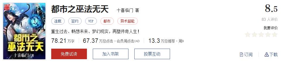 335《都市之巫法无天》作者:十喜临门
