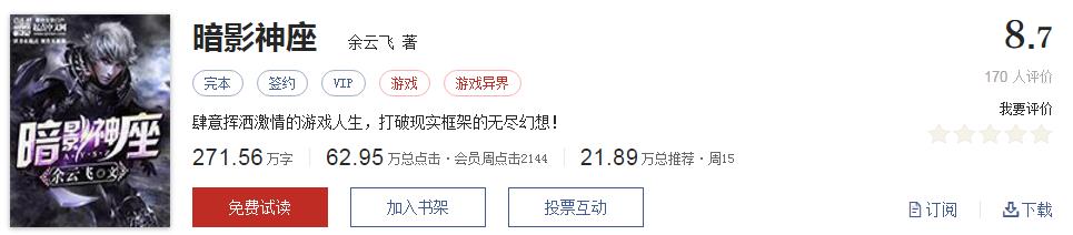 简介:传说天地之中有一张神座,谁拥有它,就拥有无穷无尽的寿命和天地间最至高无上的权势,它是天地间所有强者征战的最终宿命。通往神座道路上,白骨累累,鲜血成洋。神座无主,然而只有最强大的存在,才能踏上至高神座!