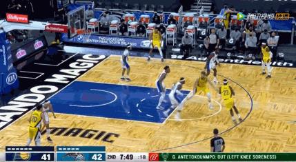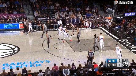 西蒙斯接霍福德的传球攻篮,西蒙斯是进攻端事实上的中锋