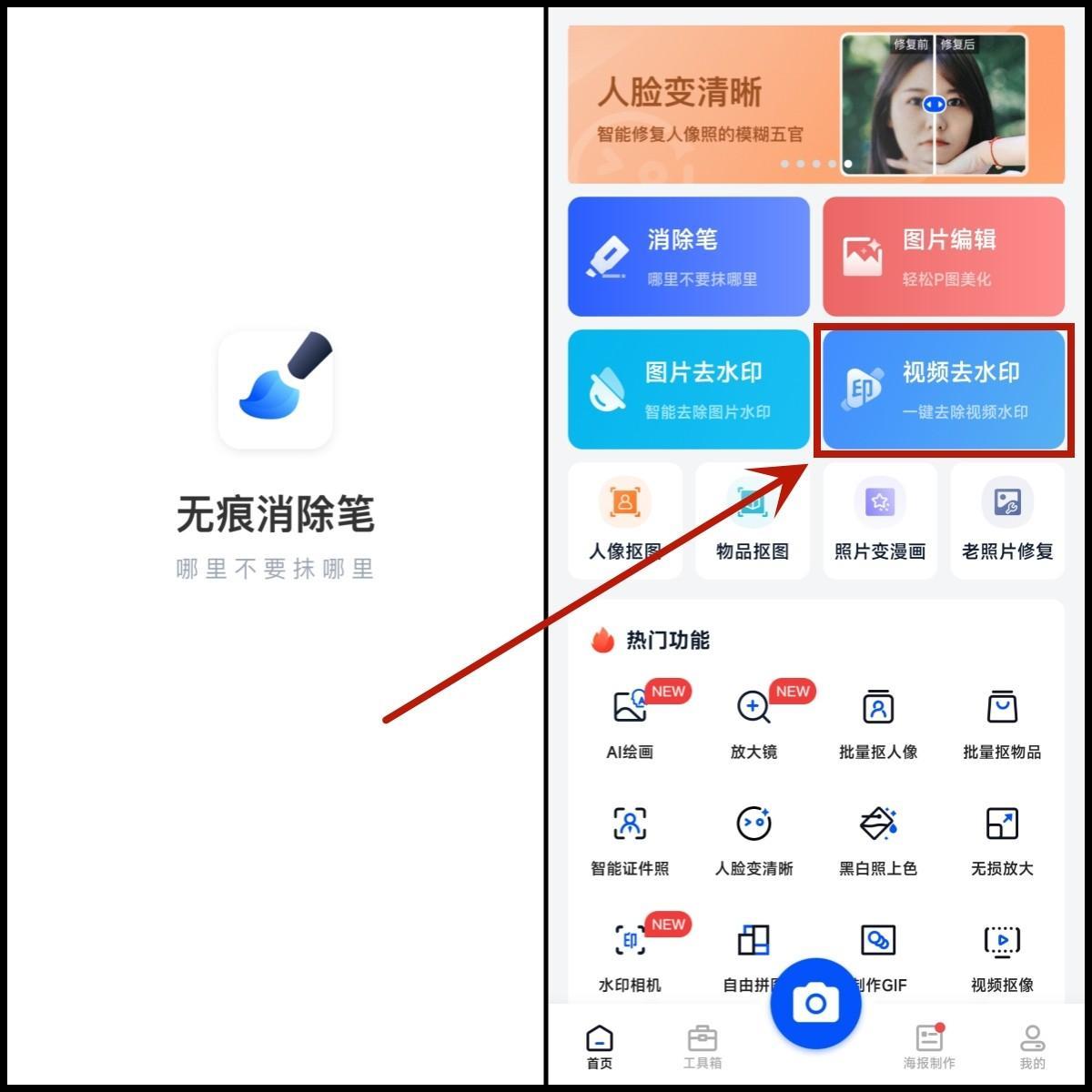 手机上的专业去水印工具是【无痕消除笔】app,我们在没有电脑时就可以使用这个,强大的去水印功能,让用户对视频哪里不满意就可以消除哪里,非常好用,下面来试试看!