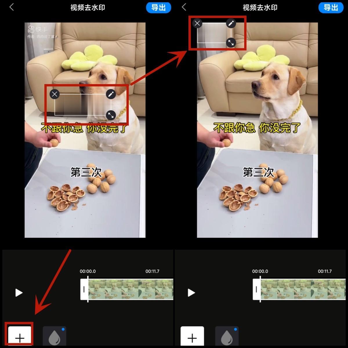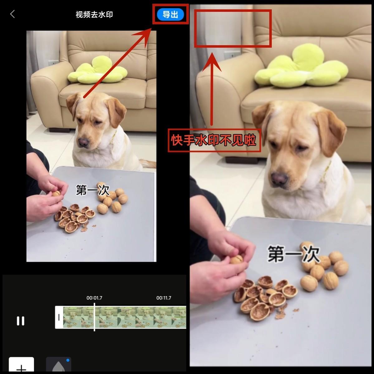 步骤三,选区覆盖上水印后,快手水印就不见了,视频播放也没有水印就可以导出到手机上啦,是不是很简单呢?