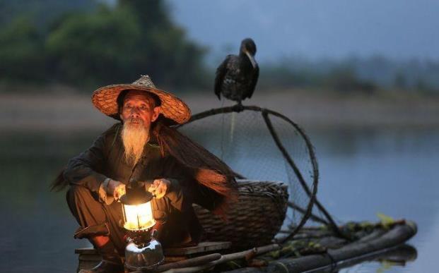 当年有人前往桂林游玩,看到了黄全德在江上划船,披着蓑笠带着鱼鹰,跟20块钱上的景色和人物极其相似,就把黄全德的视频上传到了小视频平台,从那以后黄全德老爷爷就在网络上走红了!