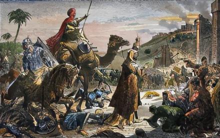 经过了阿拉伯半岛的统一战争,穆罕默德及其继承人开始率领阿拉伯骑兵对四周进行征服,用了十余年的时间,基本打下了现代的阿拉伯世界疆域以及土耳其、西班牙、中亚和意大利、印度、外高加索的一部分。阿拉伯人经历了早期麦地纳哈里发时代,倭马亚王朝以及阿拔斯王朝。另外,在北非和欧洲的西班牙、法国、意大利半岛南部的一部分都有过穆斯林政权的存在,并且十分包容,基督徒,犹太人只要交纳人头税就可以保持自身信仰。