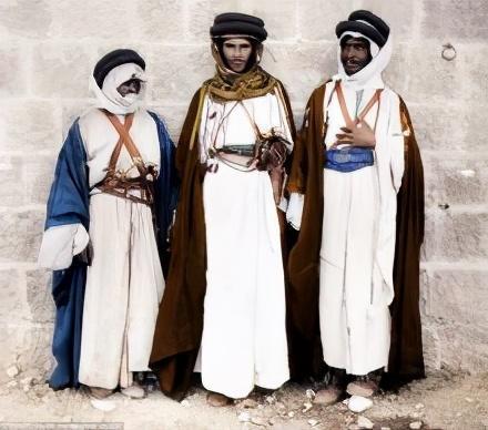 传统服装为白长衫、粗毛呢斗篷、黑色灯笼裤;戴白布或方格布的盖头或缠头。大部分地区的妇女外出戴面纱。妇女喜戴戒指、项链和鼻环等首饰;有的还在前额、脖颈、双唇、双颊、胸部、脚掌黥染蓝色花纹。 [1]