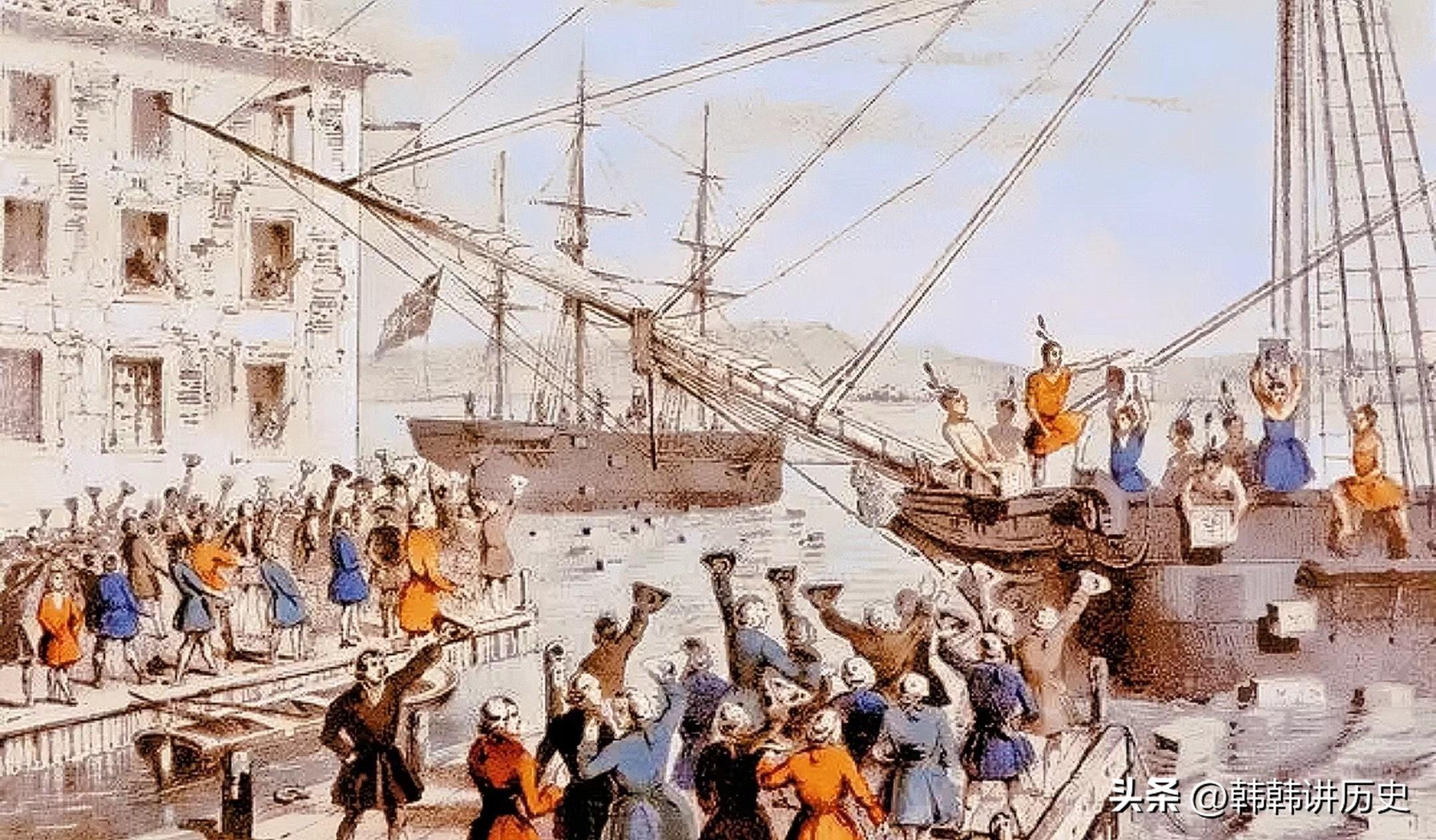 由于《茶叶法》规定英国在北美的殖民地只能从英国东印度公司进口茶叶,这种垄断性的措施导致了当年波士顿爆发了“倾茶事件”,开启了美国独立战争的序幕。