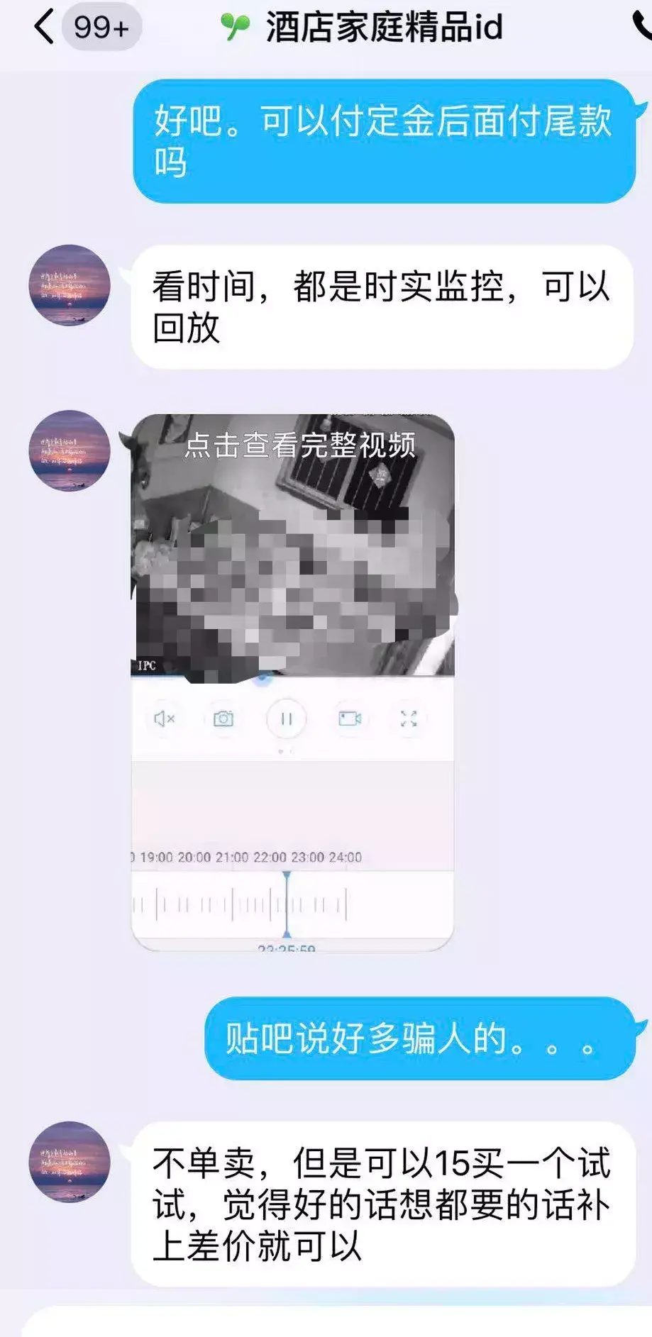 卖家向新京报记者发来一段家用摄像头录下的视频,摄像头正对床,画面内系不雅视频。QQ聊天截图