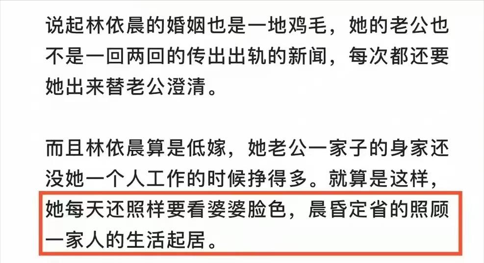 结婚这些年,林依晨老公多次被爆出出轨的消息,然而林依晨每次都选择相信,还在站出来为老公澄清。