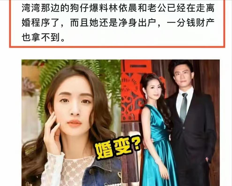 看到这里真为林依晨感到不值,如今,也对这段感情彻底了死了心才提出了离婚,也算脱离苦海,希望她未来的路越来越好。