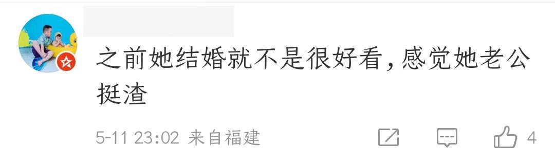 有网友吐槽,之前结婚就不看好,感觉她老公挺渣。