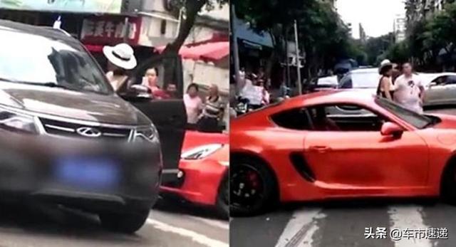 保时捷女司机与奇瑞男司机的冲突一下吸引很多路人的围观。