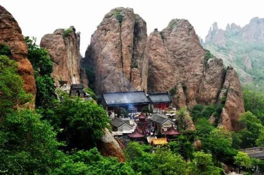 石壁如刀峭,嵯岈嶙峋,陡峭秀丽,翠岩山石呈褐绿色,夏秋之季,青苔密布,峰峦苍翠,景色如画。