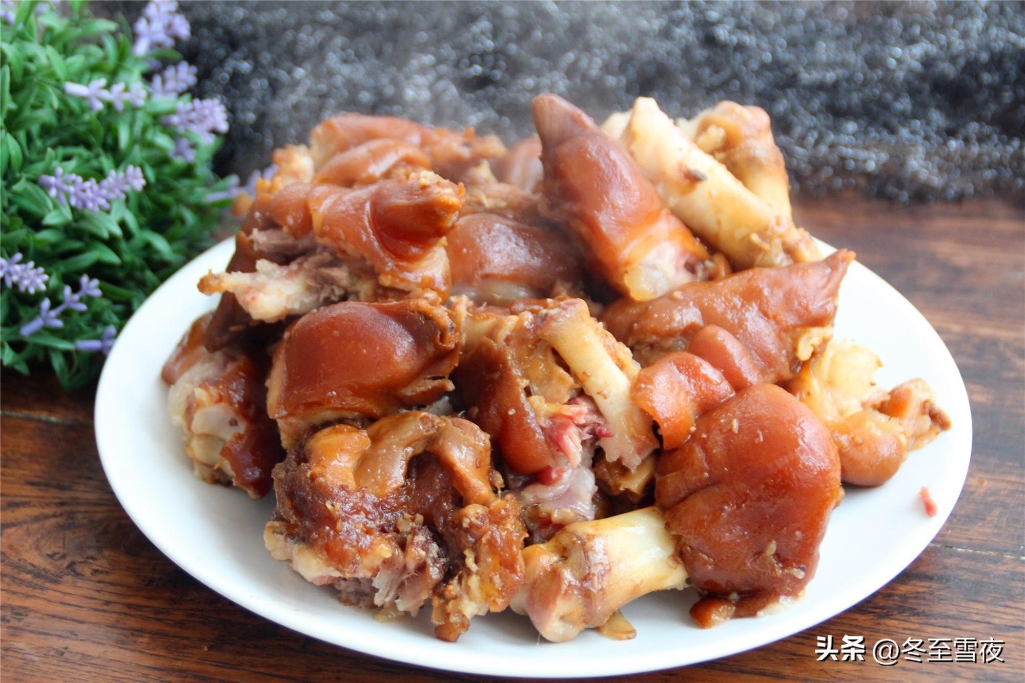 第五道:【酱猪蹄】所需材料:猪前蹄4个、油盐适量、大葱1段、姜1块、花椒20粒左右、八角3个、香叶5-6片、干辣椒2-3个、黄豆酱或者干黄酱50克、料酒2汤匙、生抽2汤匙、红烧酱油半汤匙、鸡精1茶匙、蚝油1汤匙、冰糖10几粒、