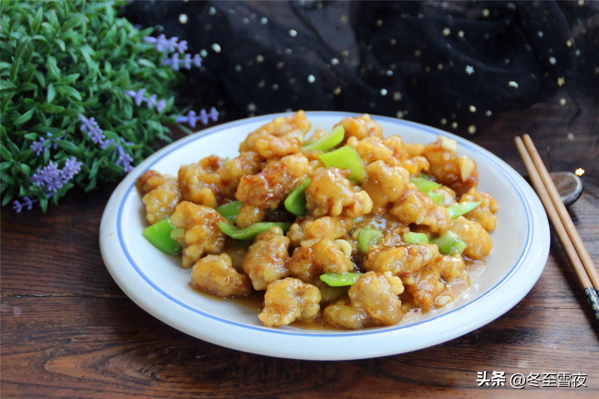 第八道:【熘肉段】所需材料:瘦猪肉200克、油盐适量、香油1汤匙、葱1段、姜2片、大蒜2瓣、酱油1汤匙、白胡椒粉1茶匙、料酒半汤匙、淀粉1小碗、