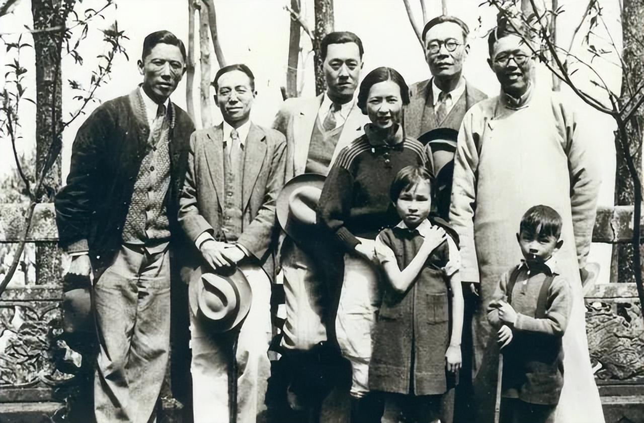 1938年,梁思成一家在昆明与友人周培源、金岳霖、陈岱孙、吴有训合影