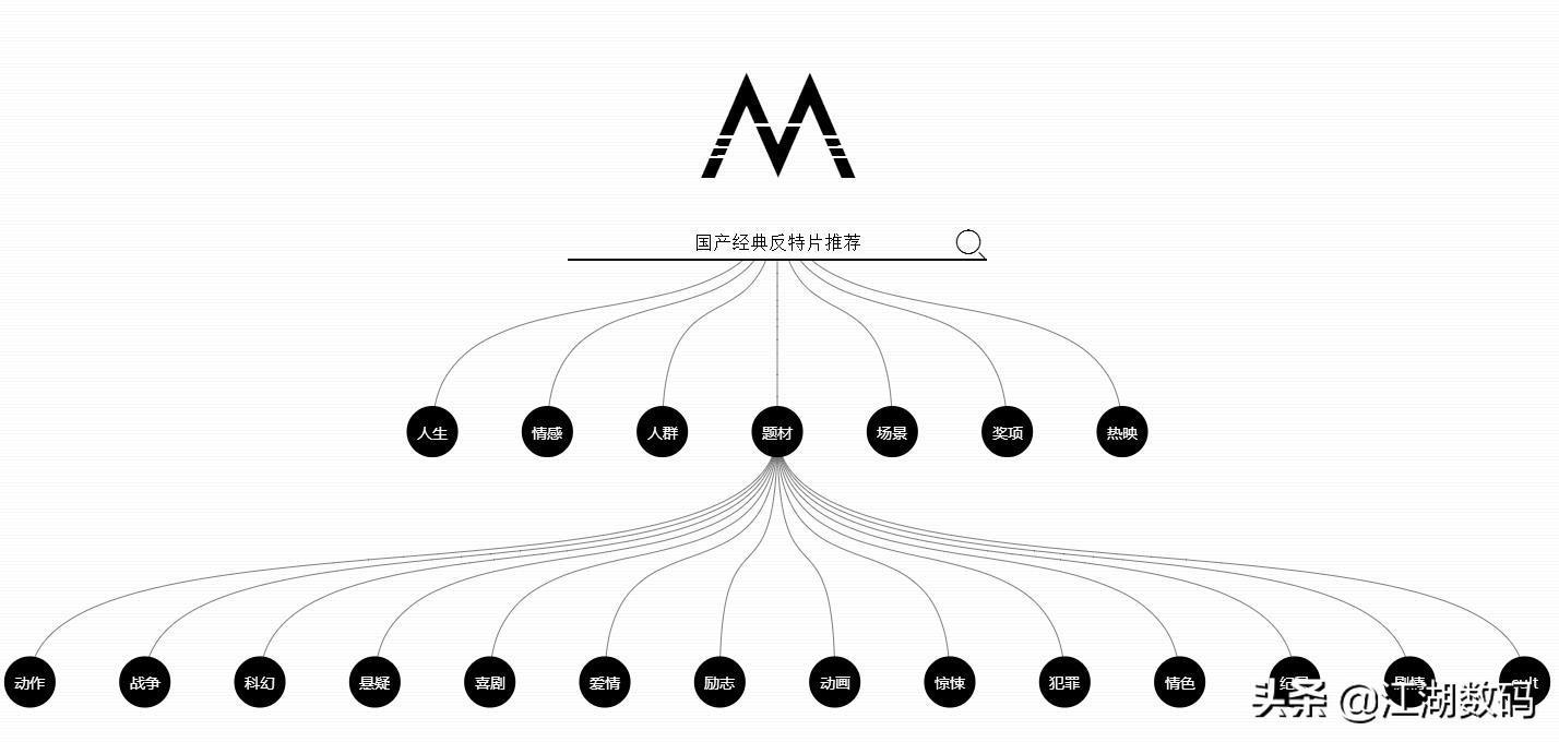 从网站首页就可以看出和其他电影网站风格的明显不同,是非常严谨的思维导图画风….没有一股劲往上怼各种广告链接。整体的风格都是非常性冷淡的黑白灰色系,还可以改变背景和音效,都是电影级别;