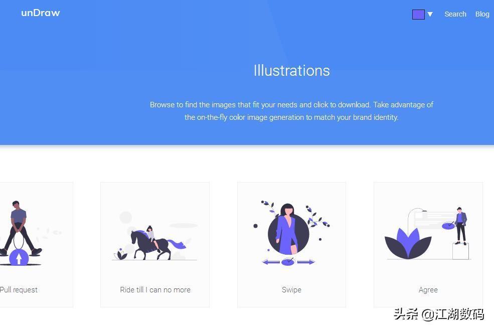 Undraw 是一个完全免费的开源插画库,您可以完全免费使用这些插画,并且无需归属,你可以在商业或个人项目中免费使用。