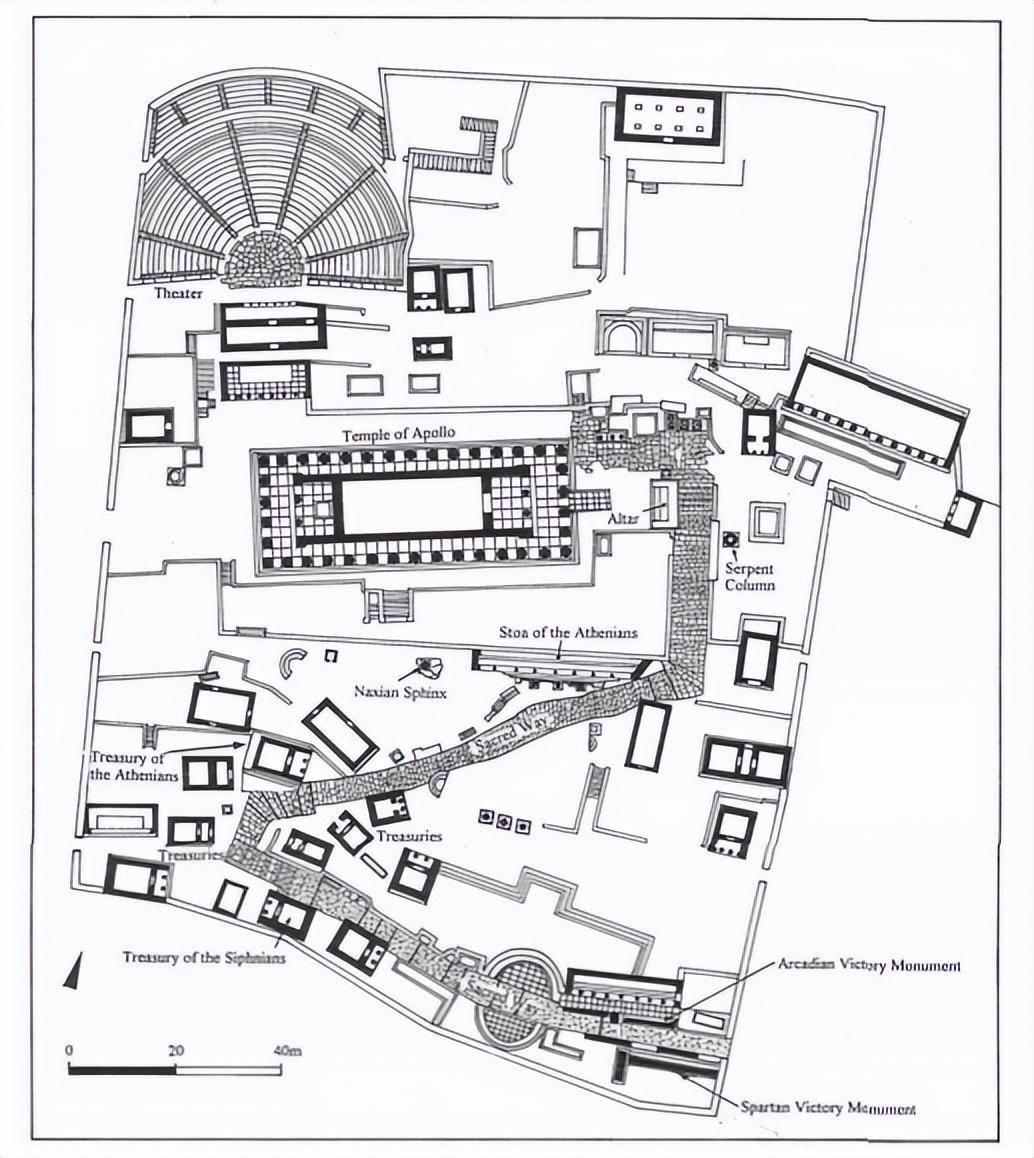 阿波罗的圣所是一个挤满了建筑和纪念碑的大长方形,主要是阿波罗神庙和曲折的神圣之路。希腊人很喜欢向神谕征求关于未来的建议。