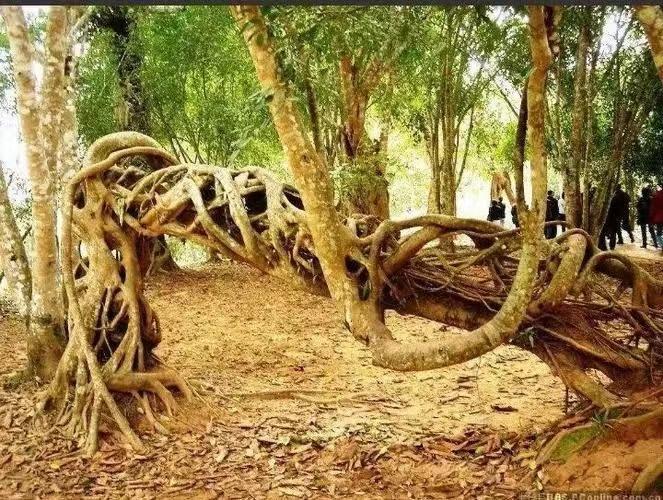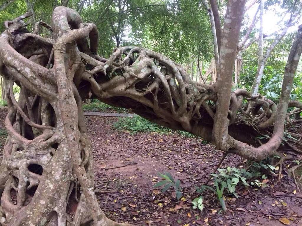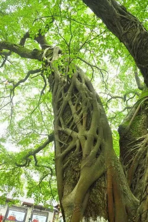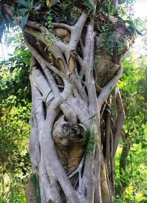 从形态上看,榕树环抱处曾经有一棵大树,榕树正是围绕大树生长,最终绞杀了大树,获得了生存的机会。