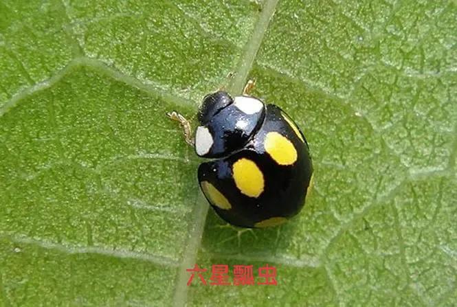 六星瓢虫,是一种属于昆虫纲、鞘翅目、瓢虫科、巧瓢虫属的昆虫。六星瓢虫是小型昆虫,体长3.5~4.3mm ,触角短鞭状,前胸背板黑色,左右两边各有一个黄色圆形斑。