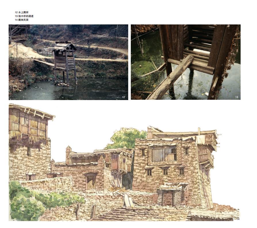 陆上出挑的空中厕所以四川西部马尔康地区的藏族民居为代表。厕所设在二楼以上各层。悬挑在建筑的背立面以外,从平面上分析,每个楼层的厕所都是错开的。这样,能保证每个蹲位的粪便都能直接落到一层。而且,12131412水上厕所13独木桥的通道14藏族民居从民居的造型上来看,这种设计,大大丰富了原来十分单调的方盒子一样的建筑造型。使民居的立面上产生了有趣的凹凸,形成一种几何美的节奏感。在甘孜等地,出挑在外的厕所用墙包围,变成了一种碉楼,在厕所的墙面上开有小窗口,还可以了望、射击,增强了建筑的防御功能(图14)。