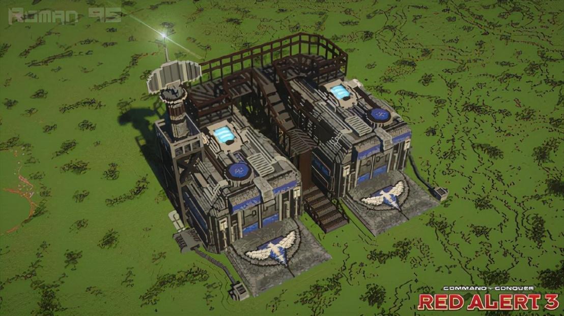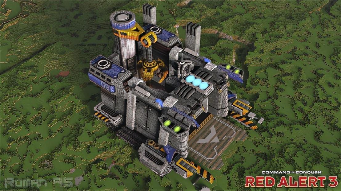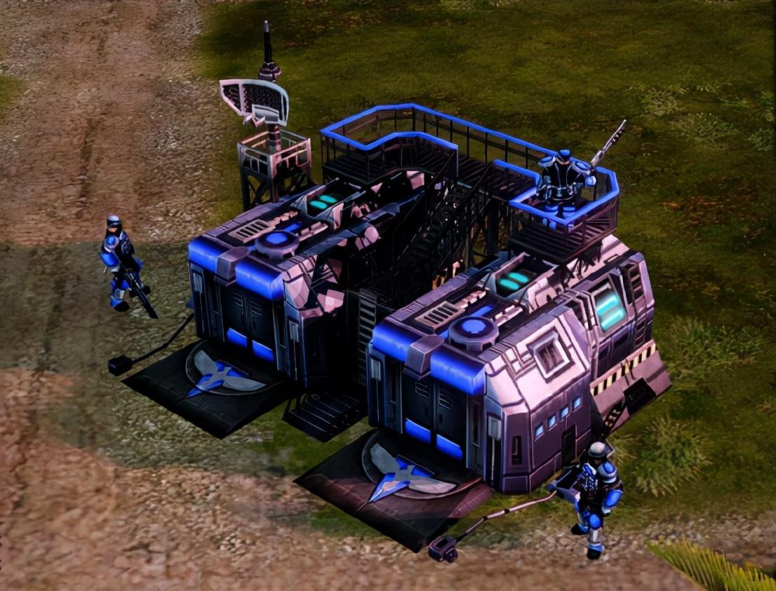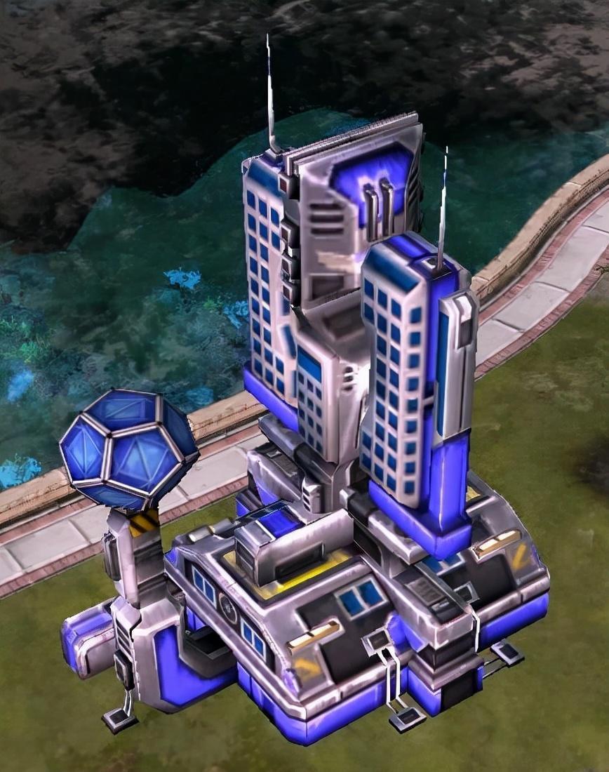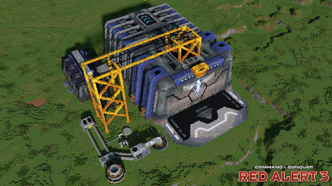 和二代相比,三代的盟军建造厂虽然生产方式没啥变化,但是造型上变得更加科幻,加上建模材质的问题,金属质感很强,有点未来工厂的感觉。